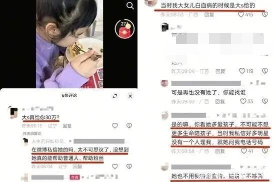 这两天,大S因为一件事,受到了网友们的关注和讨论!原来大S还曾做过这样的一件事!网友们看后,都觉得很暖心!原来是一位宝妈说的,她因为女儿生病,于是发了信息,没想到大S竟然回复了这位宝妈,还给了这位宝妈30万,让她来为女儿治病!