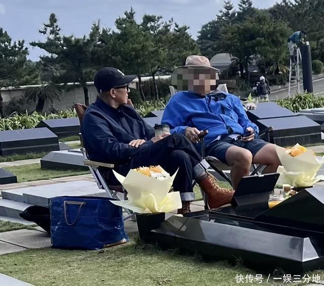 看样子,具俊晔正在和好友聊天!具俊晔手里貌似还拿着一个杯子,大S的墓地前依旧摆放着两束黄色的花,以及一些她生前爱吃的东西!具俊晔的椅子旁放着一个蓝色的袋子,正如S妈当初所说的,具俊晔天天金宝山陪伴着爱妻!